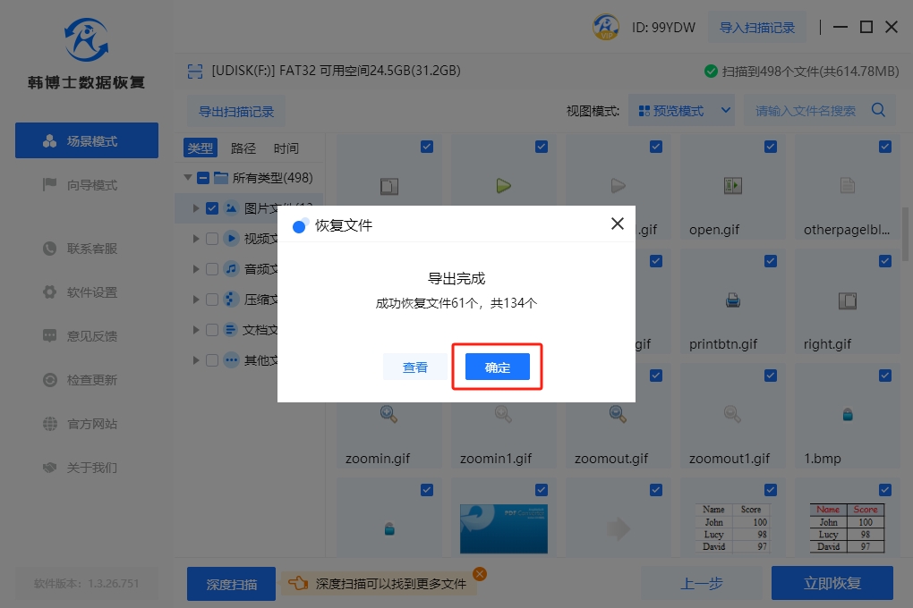 6. 恭喜,韓博士恢復(fù)完成,點(diǎn)擊“查看”按鈕,即可輕松找到已成功恢復(fù)的U盤(pán)數(shù)據(jù),十分方便。