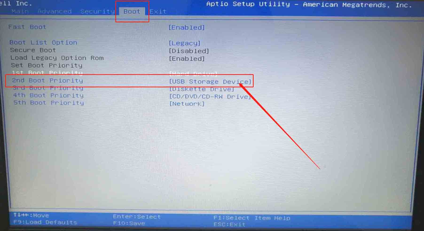 4.使用鍵盤上的“+”將usb選項移動至第一項,最后按下“F10”保存設(shè)置,電腦成功設(shè)置為U盤啟動。