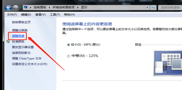 3.在彈出的顯示頁(yè)面右側(cè)點(diǎn)擊【調(diào)整亮度】。