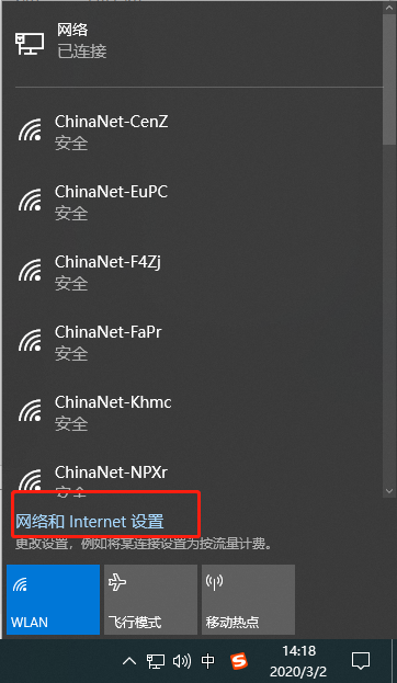 1、點(diǎn)擊win10桌面右下角處網(wǎng)絡(luò)圖標(biāo),隨后選擇“網(wǎng)絡(luò)和Internet設(shè)置”進(jìn)入;