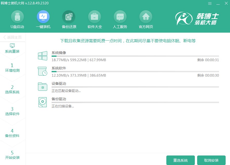 第一步,請檢查“韓博士裝機(jī)大師”是否已保存到您的電腦桌面。找到該軟件圖標(biāo)后,雙擊啟動,然后在主界面上選擇“開始重裝”,以啟動安裝流程。