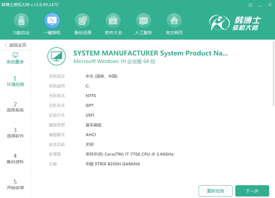 2.韓博士會(huì)首先進(jìn)行環(huán)境檢查,待檢查結(jié)束后,點(diǎn)擊“下一步”按鈕,開始后續(xù)操作。