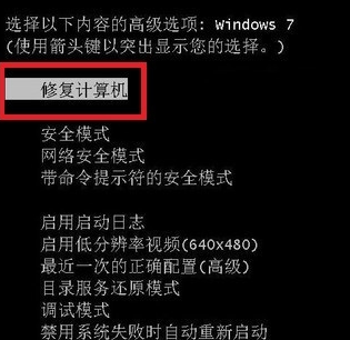 1.重啟電腦后按F8,再點(diǎn)擊“修復(fù)計算機(jī)”。