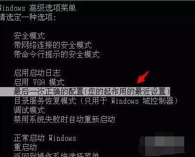 方法一:恢復(fù)“最后一次正確配置”